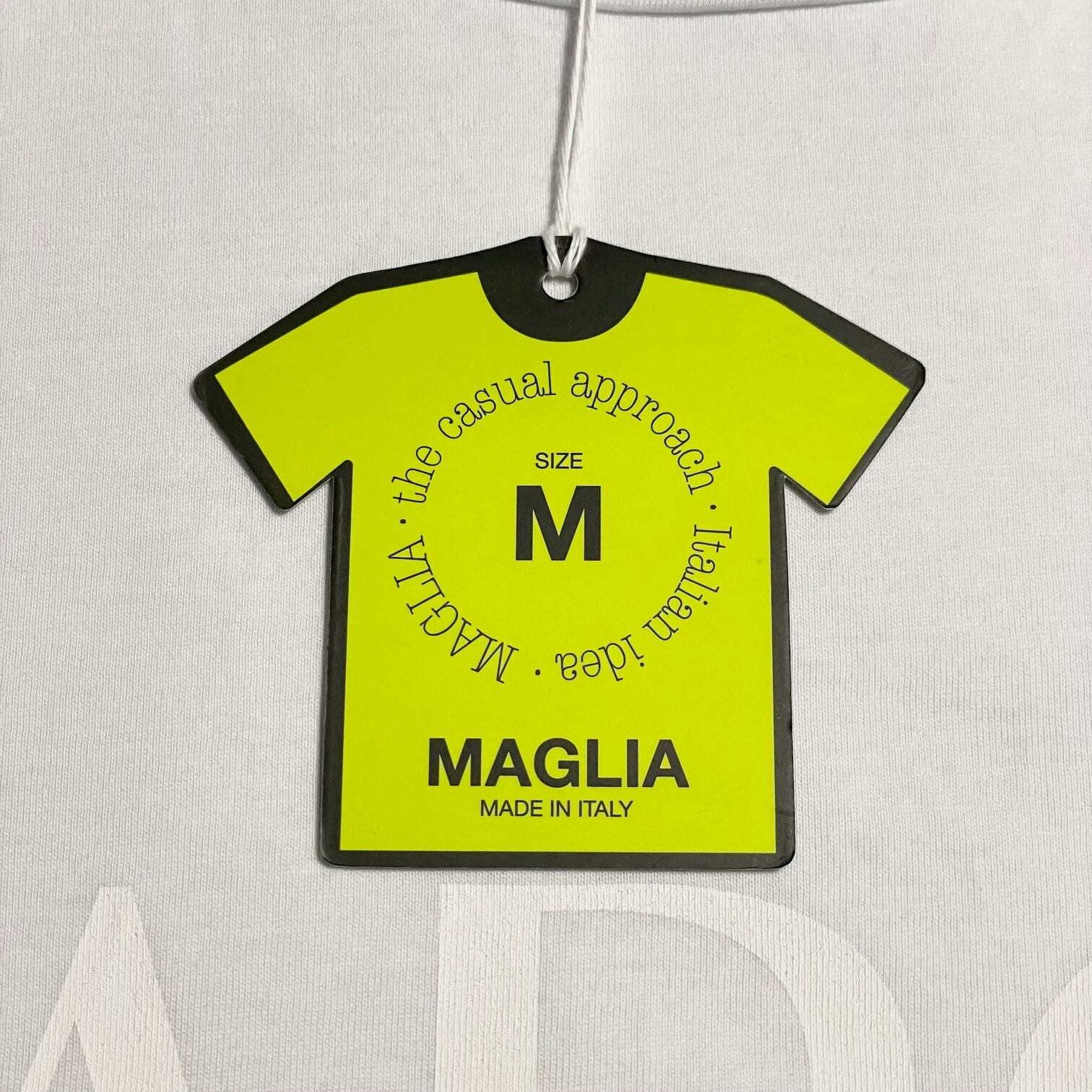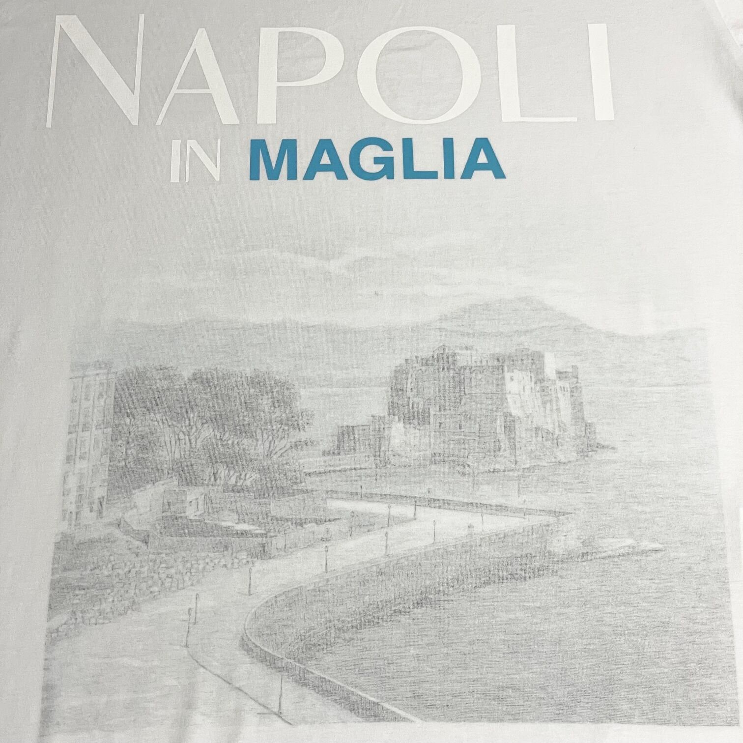 ★新品★ MADE IN ITALY製 MAGLIA 2025年AWモデル 「NAPOLI IN MAGLIA」 イタリア都市 プリント クルーネックTシャツ ホワイト×ナポリブルー M~XLサイズ | G-select