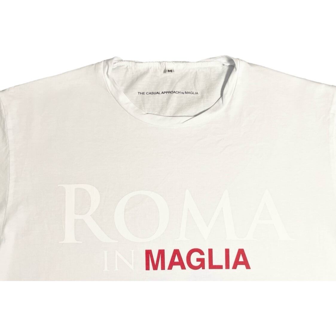 ★新品★ MADE IN ITALY製 MAGLIA 2025年AWモデル 「ROMA IN MAGLIA」 イタリア都市 コロッセオ プリント クルーネックTシャツ ホワイト×レッド M~XLサイズ | G-select