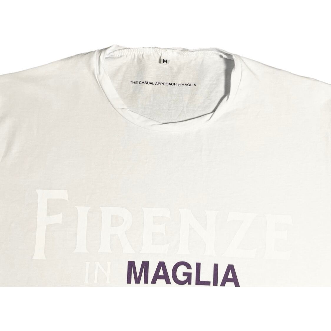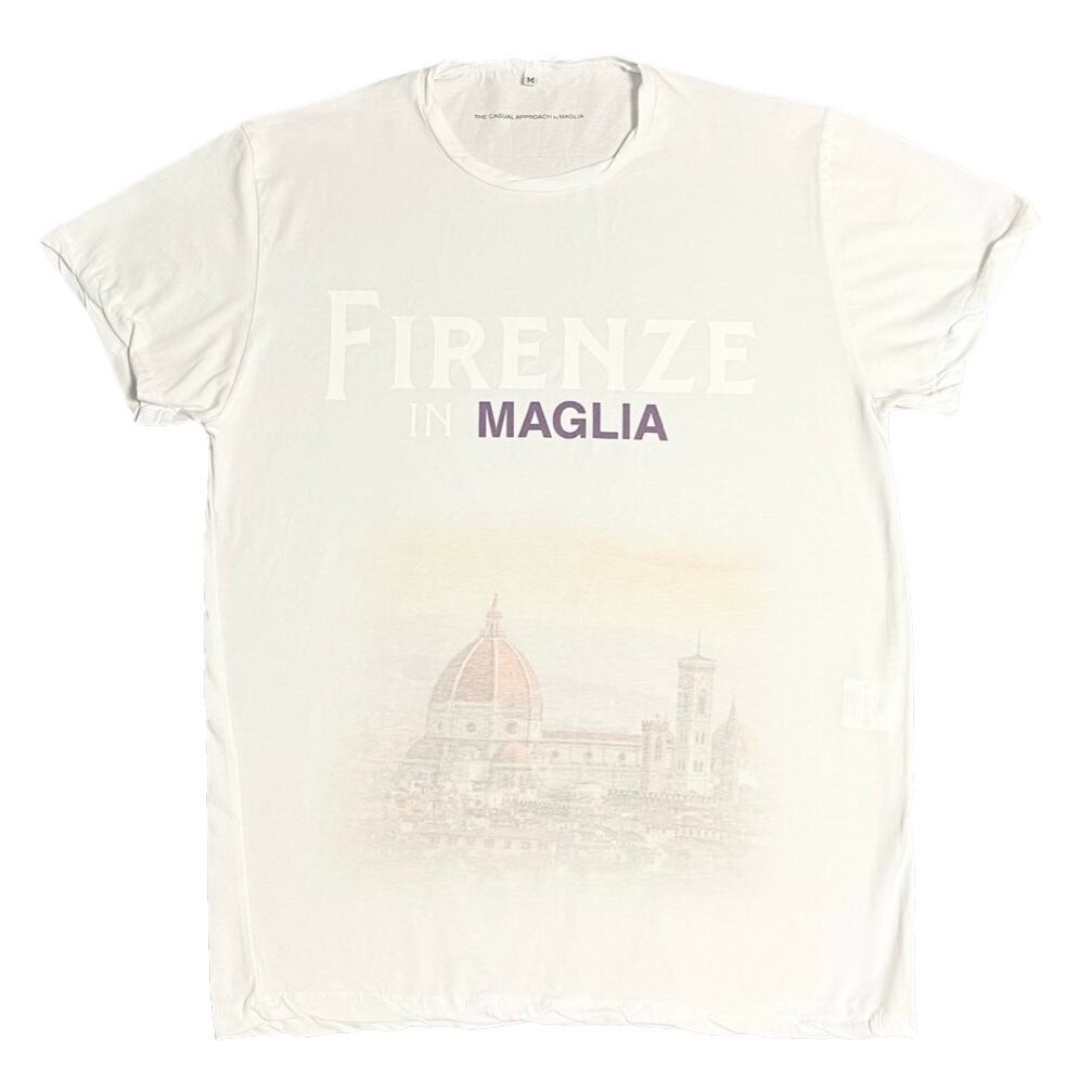 ★新品★ MADE IN ITALY製 MAGLIA 2025年AWモデル 「FIRENZE IN MAGLIA」 イタリア都市 プリント クルーネックTシャツ ホワイト×パープル M~XLサイズ | G-select