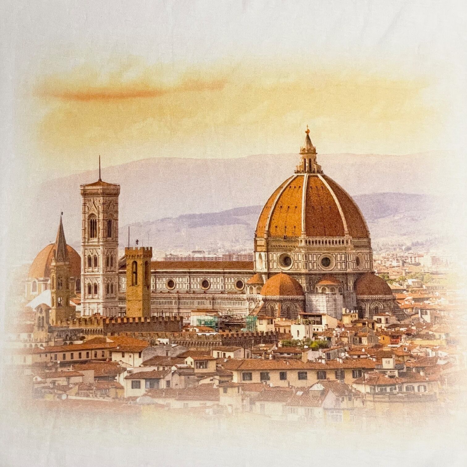 マリアのTシャツはハンドメイド製で柔らかい素材で襟や袖、裾などをねじって縫い込むなど細部までこだわっており、こちらのモデルはイタリア・フェレンツェ市にある世界遺産として知られる「Cattedrale di Santa Maria del Fiore(サンタ・マリア・デル・フィオーレ大聖堂)」と呼ばれるイタリアを代表する観光スポットのサンタマリア大聖堂を裏面にプリントし、薄く浮かび上がるという凝った仕様となっております。