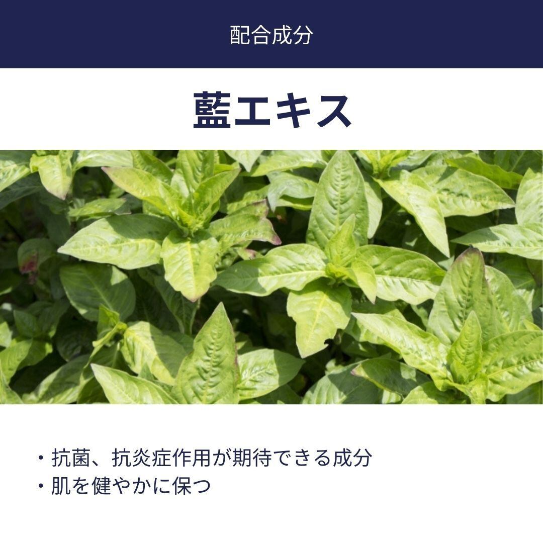 そして抗菌作用もある藍エキスで、肌を引き締め、ハリと潤いを与えます。
