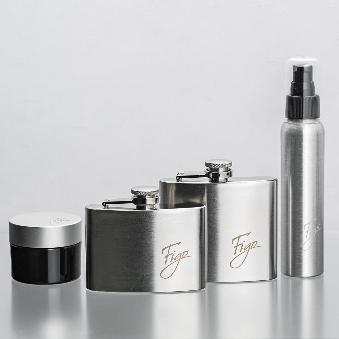化粧品の常識からあえて外れ、Figo特注でステンレス製のスキットル容器を採用しており、使い続けることで容器に微細なキズが増えていき、それが味となり使用者の色に染まっていきます。