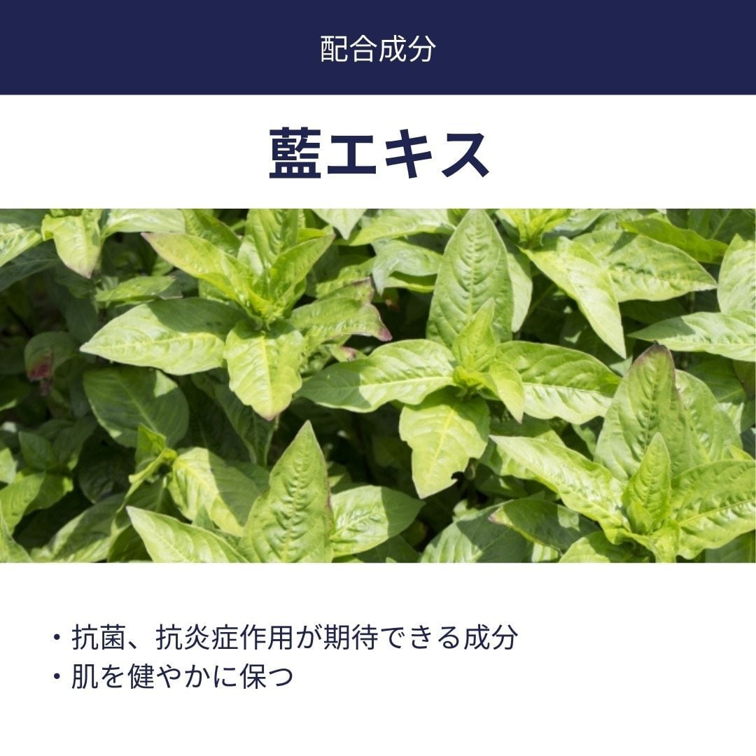 Point1:男性向け商品ではめずらしい藍エキスを配合。デニム製品を染める染料である藍から抽出した成分。藍染職人の手はおどろくほどすべすべと言われています。肌を健やかに保ち、ハリと潤いを与えてくれます。