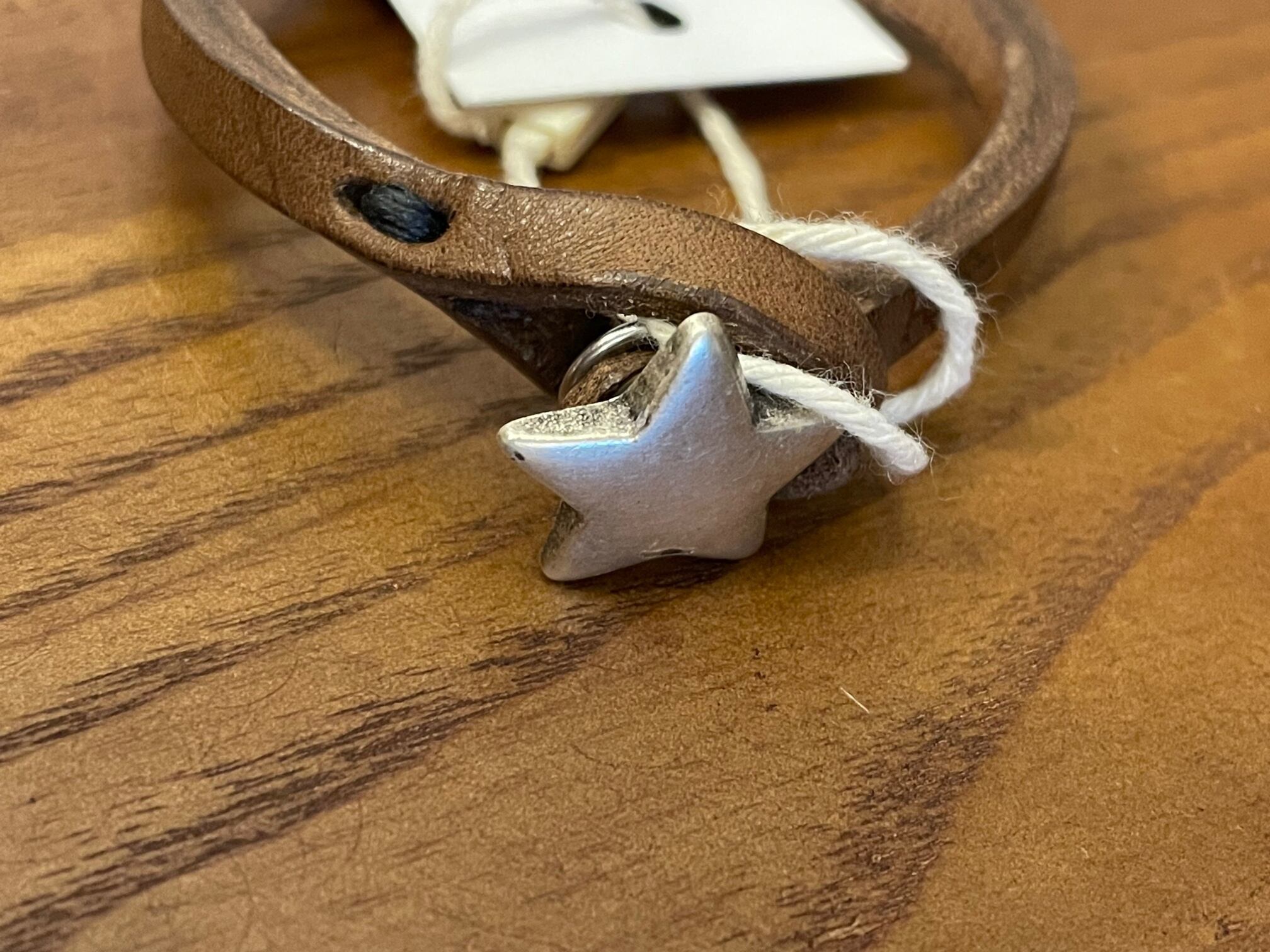 こちらはシンプルな革のブレスレットに星の留め具が付いている落ち着いたデザインで、サイズにゆとりがあるのでユニセックスでの使用が可能な為、大切な人へのプレゼントやペアで着用するのもおすすめです。