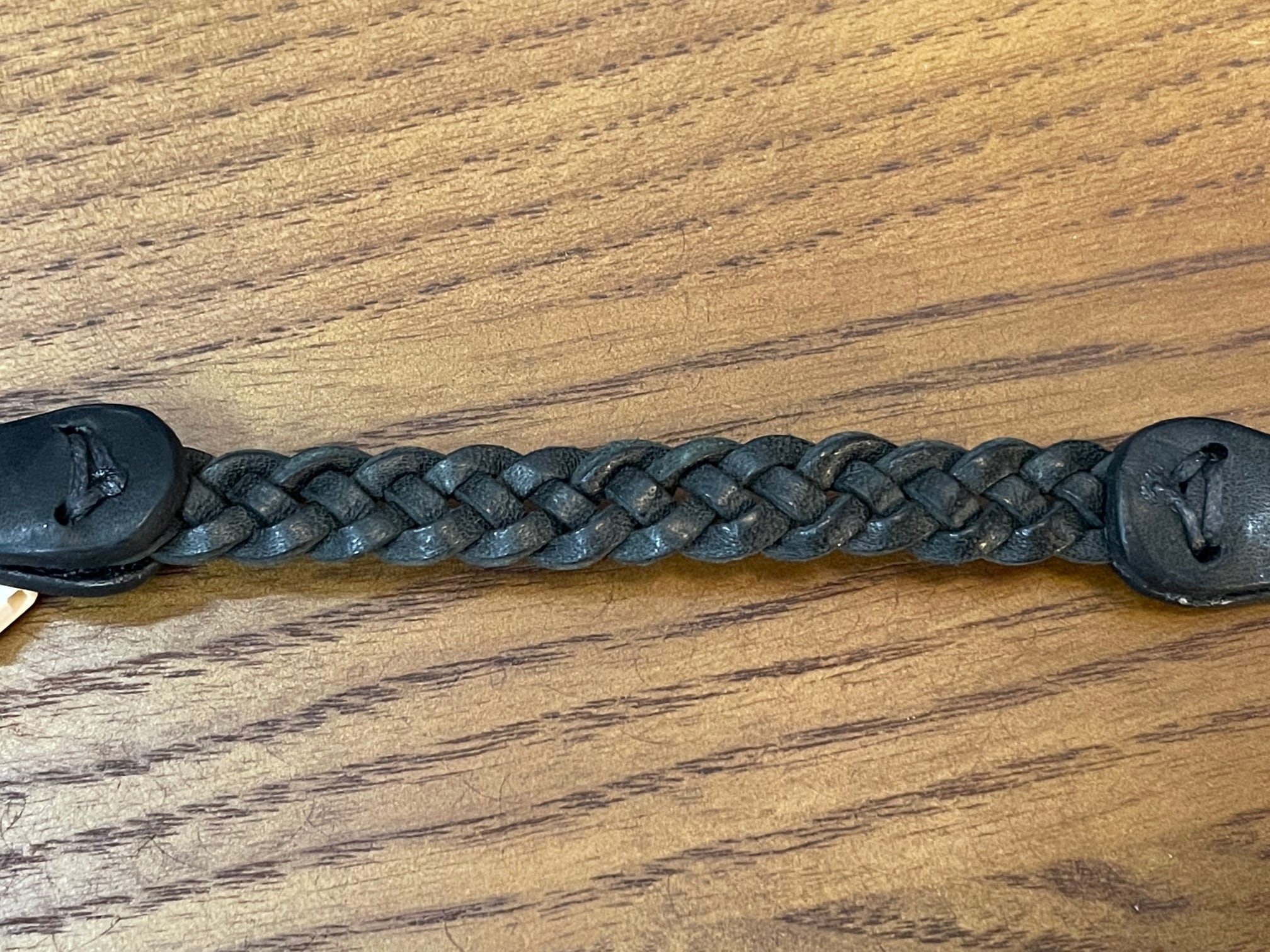 こちらは両サイドがループになっており、付属のシルクスカーフを通して着用するハンドメイドのレザーブレスレットです。