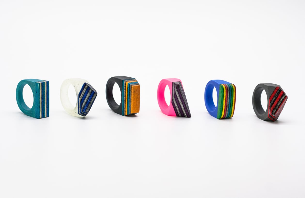 昨今注目されているSDGsで注目を集めるエシカルな作品を展開しており、廃スケートボードを使って作った指輪がフランスの有名ブランドのagnès b.(アニエスベー)の目に留まり、指輪を作成した実績もあるブランドです。